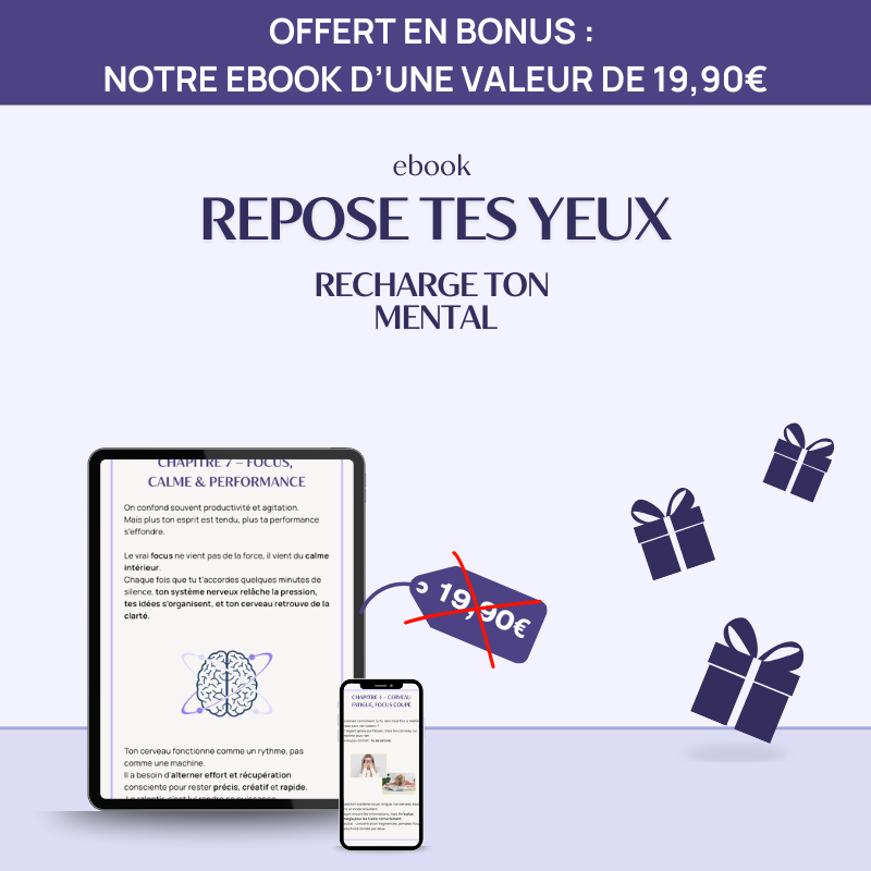 Offre Black Friday : jusqu’à –50 % - Livraison offerte - Ebook “Repose tes yeux” offert (valeur 19,90 €)